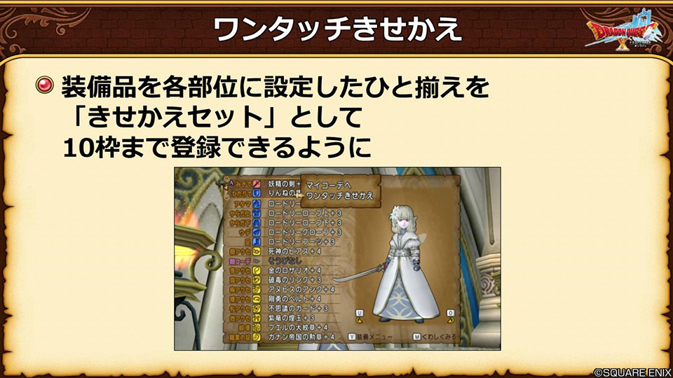 ・登録しておいた装備にワンタッチで着替えれる機能