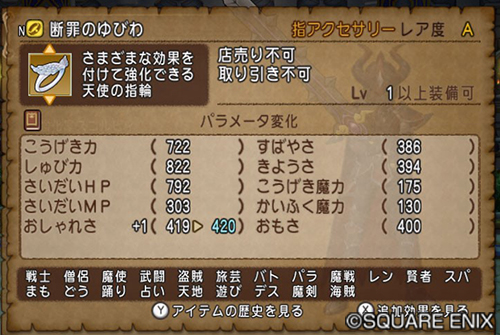 ・8人同盟のボスを討伐して獲得した素材を集めると、「断罪のゆびわ」に任意の効果を付けたり、強化することができる