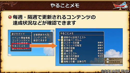 ・ゲーム内で、週課の進捗状況をまとめて確認できる機能が追加された